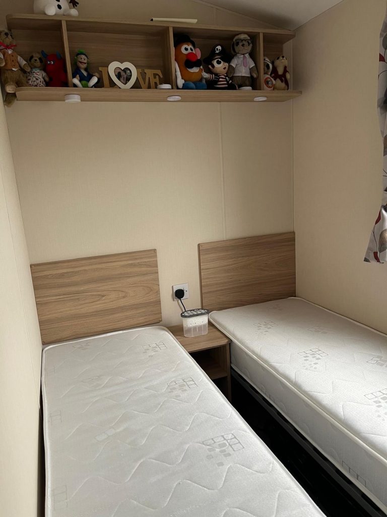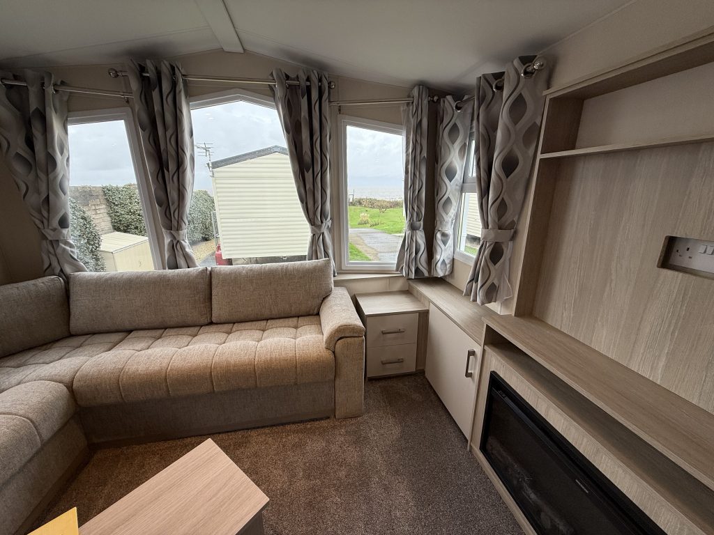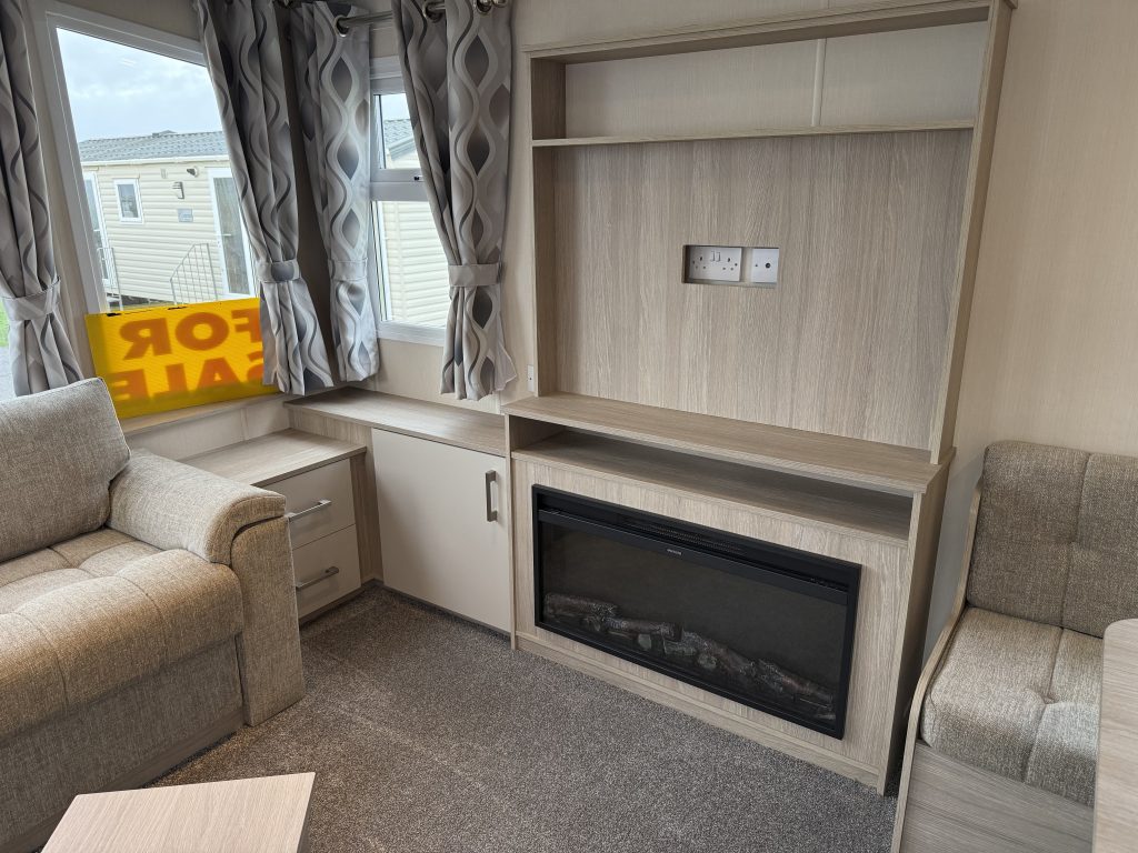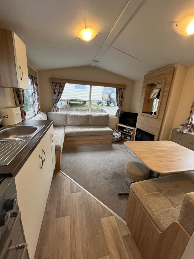 This lovely 2 bed , 6 berth caravan has had one careful owner and is situated close to the beach. It has electric panel heaters, electric fire, outside light.