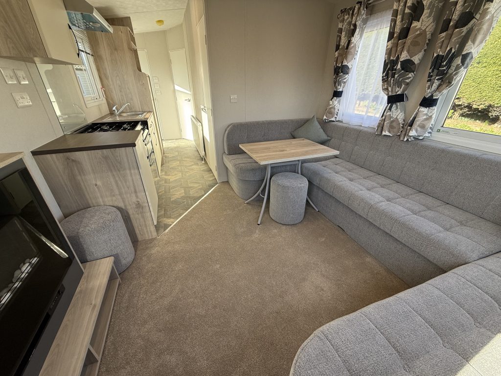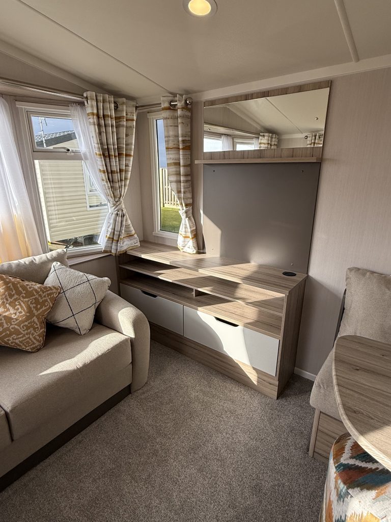 This lovely 2 bed , 6 berth caravan has had one careful owner and is situated close to the beach, It has electric panel heaters, electric fire, outside light.